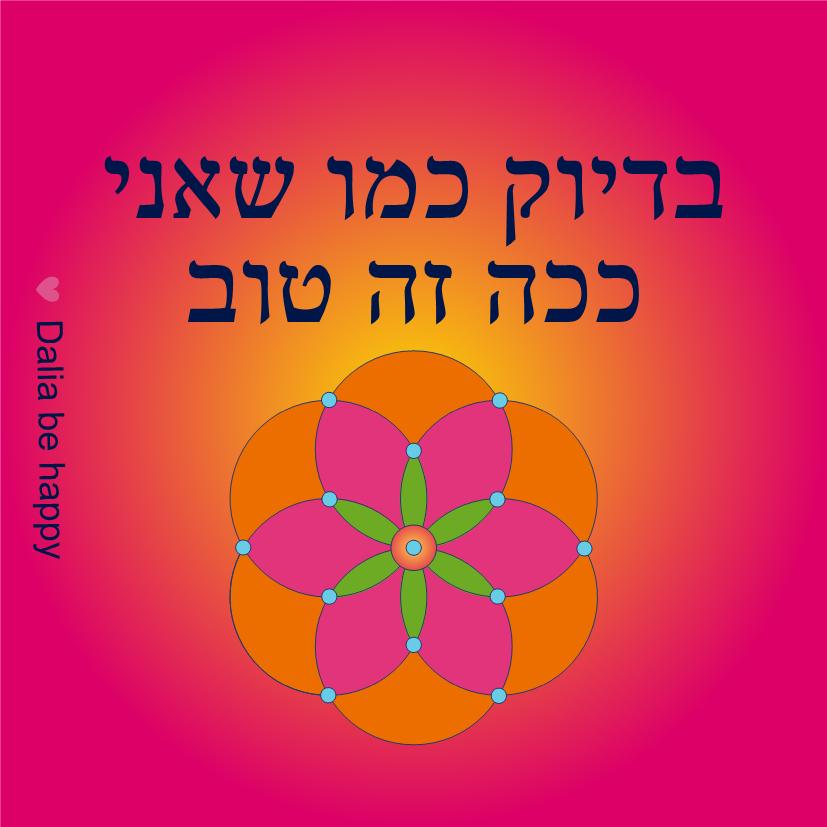 מילים מגשימות מציאות. בדיוק כמו שאני ככה זה טוב זו את שמשלימה עם עצמך, מקבלת אותך עם לב פתוח, ידיים פתוחות לרווחה ושמחה של הלב. את מסתכלת על עצמך ורואה את הדברים הטובים של ואם יש צורך להקדיש אז את נטולת ביקורת ושיפוטיות כי זה ככה. בדיוק כמו שאת ככה זה טוב. תבחרי לך קולג' של מילים ותיהני מאווירה טובה ושמחה. התמונות של Dalia be happy מעולות כמתנה של אהבה לחברה טובה ולאישה אהובה.